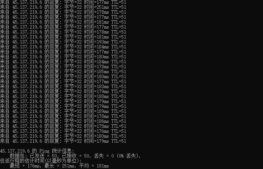 我本地也是在180ms左右,可以看到是很稳的,都没有丢包的情况,这对海外VPS来讲是非常补充的。
