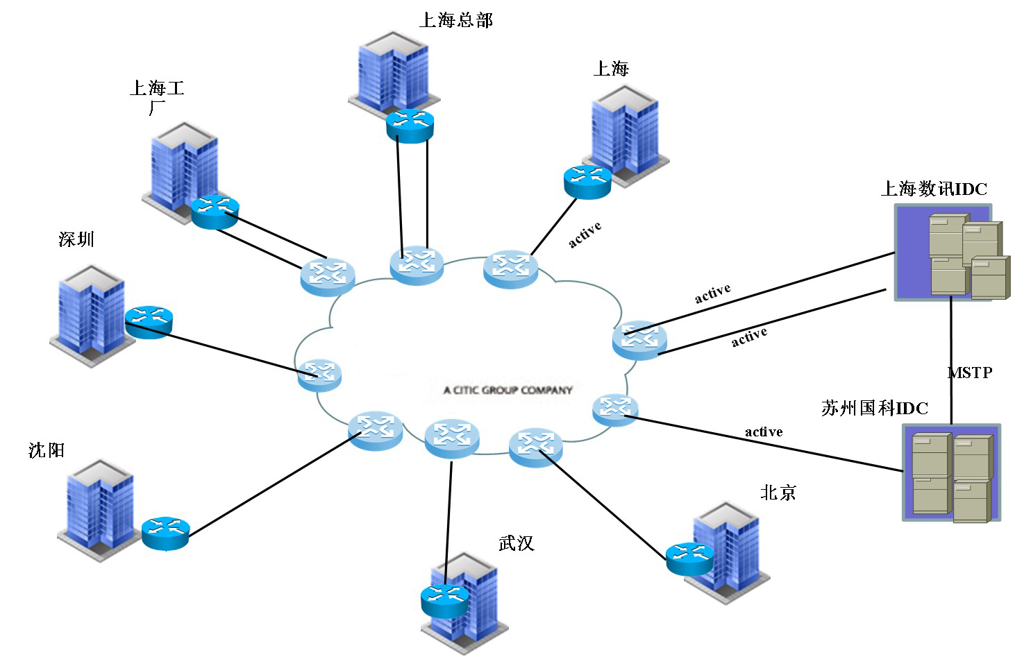 商业应用:客户通过MPLS网络连接其各分支机构,支撑其日常业务工作。