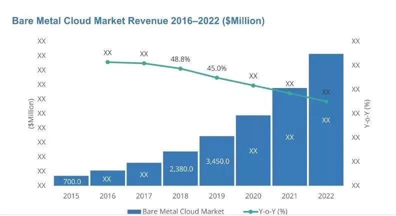 根据研究机构Infoholic的研究数据,全球裸金属云市场在2016-2022年期间的复合年增长率将达到43.2%,到2022年将达到91.530亿美元。